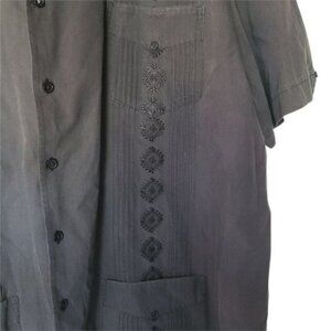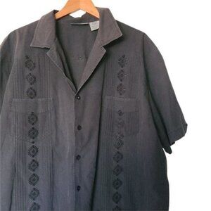 Kingsize Black Button Up Shirt 2XL Embroidered Pocket Short Sleeve