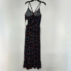 Kingston Grey Juniors XXL Crisscross Maxi Dress Black Pink Blue Floral Print
