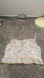 This elegant camisole top by Kingston features a sleeveless design with delicate spaghetti straps and a charming ruffled hem. The white and cream base is beautifully accented with a soft floral pattern in orange, blue, and green tones, offering a romantic and vintage-inspired look. Crafted from lightweight fabric, this crop top is perfect for adding a touch of femininity to any outfit.