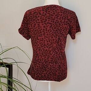 100% cotton black spots on red. size med. gathered side. good condition. no flaws