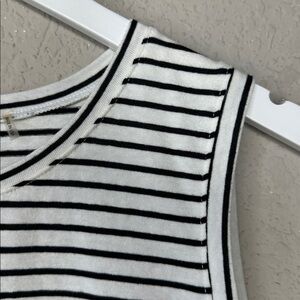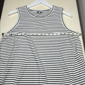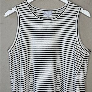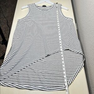 Kinly Linen Cotton Tank Top Black and White Striped Asymmetrical Hem Size L