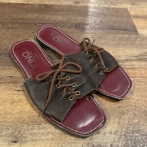 Kino Brown Leather Lace-Up Slip-On Sandals Slides Size 9 Boho Made in Key West
