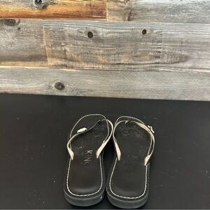 These ladies, black square toe Kino flip-flops are a size 8, and are in great preowned condition. Please see photos as they are part of the description and show the wear and condition of the shoes. Questions? Leave a comment below!