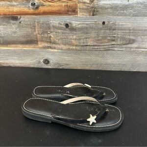 Kino Key West Sandal Flip Flop Women’s Thongs Black Square Toe Starfish Jewel 8