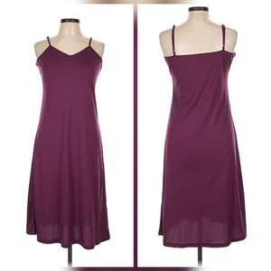 Kinolau Manaola Collection Adjustable Spaghetti Strap V Neck Eggplant Jeweltone Midi Dress Sz. L