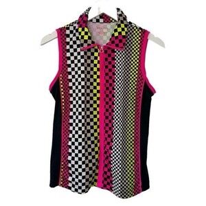 Kinona Golf Keep It Covered Tank Top Athletic Sleeveless Check Neon Retro Small