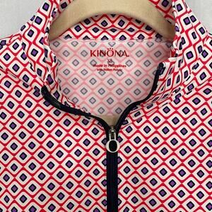 Stay cool and protected on the course or court with this sleeveless performance top from Kinona. The "Keep It Covered" style features a zip placket with a mock neck and a bold geometric red, white, and navy print. Made from Italian nylon-spandex fabric that’s smooth, moisture-wicking, and offers UV protection.