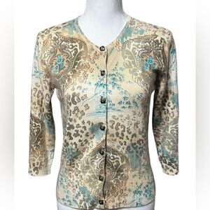 Kinross 100% Cashmere Leopard Victorian Print Sweater cardigan Size Small