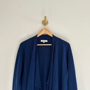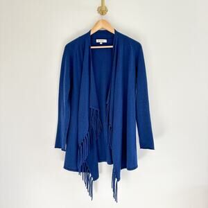 Kinross Cashmere Open Front Fringe Long Sleeve Draped Cardigan Sweater Blue XS