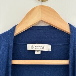 Details: Kinross Cashmere Open Front Fringe Long Sleeve Cardigan - Size: XS- Color: Blue- Material: 10% Cashmere- Features: Open front, fringe hem, long sleeve, dry clean, knit, raglan sleeve, comfort, breathable, casual.