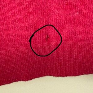 This sweater is in overall good condition. There is a small hole on the back of the sweater close to the hem. Please see photos for details and measurements