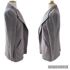 Kinross Cashmere Wool Light Grey Purple Open Front Coat Jacket Ribbed Size Small