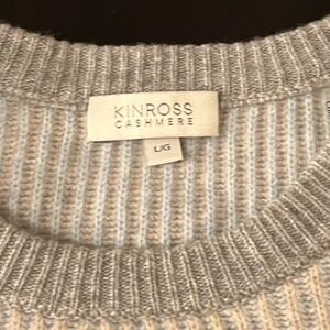 Kinross Cashmere ribbed knit pullover sweater, colorblock pastel colors, Sz L