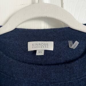 Kinross Cashmere women’s crewneck easy seam sweater XS midnight navy blue