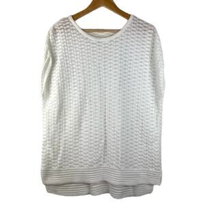 Kinross White Crochet Knit Pointelle Oversize Sleeveless Sweater Tank Medium