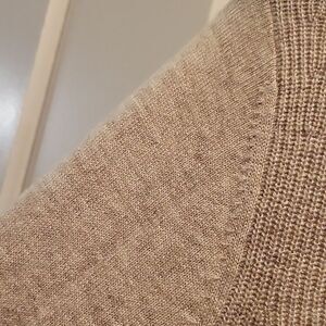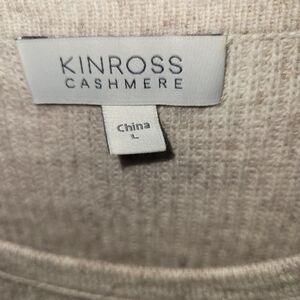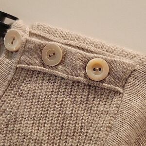Kinross Womens 100% Cashmere Ribbed Button Shoulder Crewneck Sweater Large Tan