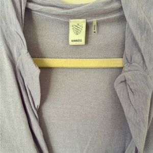 This Kinross women's cardigan in size XS features a light lavender color with a one-button closure. Made from a luxurious blend of silk and cashmere, this sweater has long sleeves, a regular fit, and a stylish cardigan style. It is accented with a button detail and is perfect for adding a touch of elegance to your outfit.