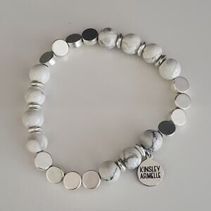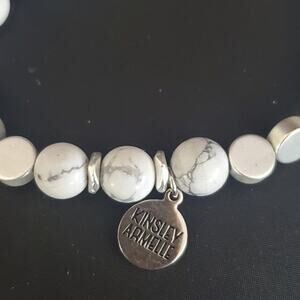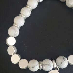 Kinsley Armelle Howlite (beads that are white with natural gray markings) stretch bracelet has silver tone accents. Very good condition