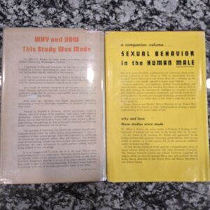 A 2-Volume complete set with Dust Jackets (DJs) of the Kinsey Sexual Behavior in the Human Male (1st Edition, 1948) and the Human Female (1st Edition, 1953). The DJs does have some wear and tear, indicating it did it's job protecting the book! No other issues beyond being 65+ years old, no writing or highlighting inside. If you are looking for a set with the Female DJ, check out my store, and if you want only a set without the DJs, also see my other set in my store.
