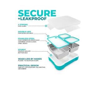 kinsho Stainless Steel Bento Lunch Box Set for Adults, Kids - Insulated Bag - Leak-Proof Metal Compartment Meal Prep Food & Snack Containers for Work Travel School Daycare. Eco-friendly removable steel containers are simple to fill with your favorite foods and securely nestle into the bottom tray compartments. Each metal container’s plastic lid has a tongue-and-groove seal to protect against spills. Colorful rubberized trim and easy grip "ear” makes them simple to use for children and teens. Toddlers may need adult assistance