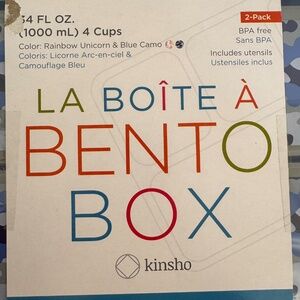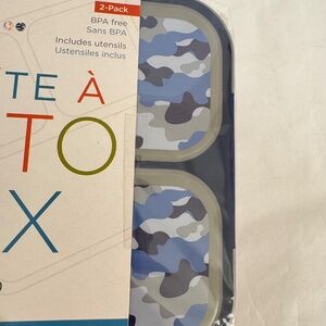 Kinsho La Boite A Bento Box Set Of 2 Unicorn & Blue Camo Utensils Food Storage
