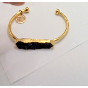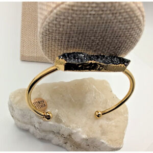 Kinsley Armelle Black Druzy Quartz Bangle Cuff Bracelet Gold Tone