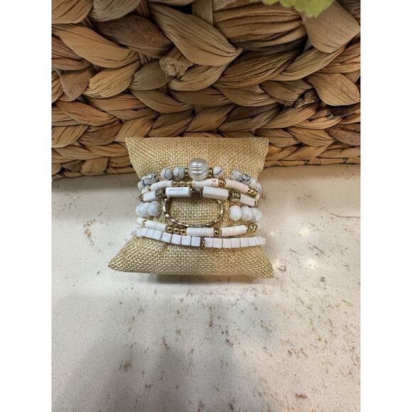 Kinsley Armelle Bracelets Set Of 6 White Gold Beads Stretch Standard Size