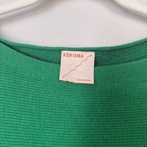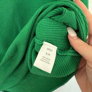 Green kint scoop neck sweater with drop shoulder.