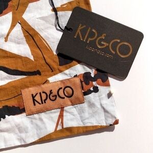 This small cosmetic bag has an abstract leaf design that's light brown, black, and white in color. It has a black drawstring that closes the bag. There is a gold brand patch on the front bottom right with the brand's logo. The inside of the bag is white. Super cute and convenient when traveling or separating products. Beautiful, neutral design that's perfect for Fall and great for year round use! Different & unique!