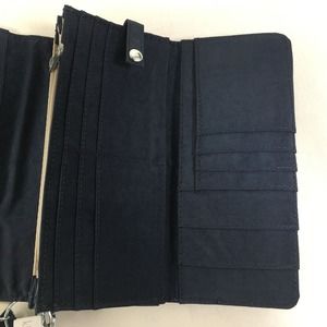 - Inside: four cash compartments, 12 credit card slots, interior zip, two ID slots