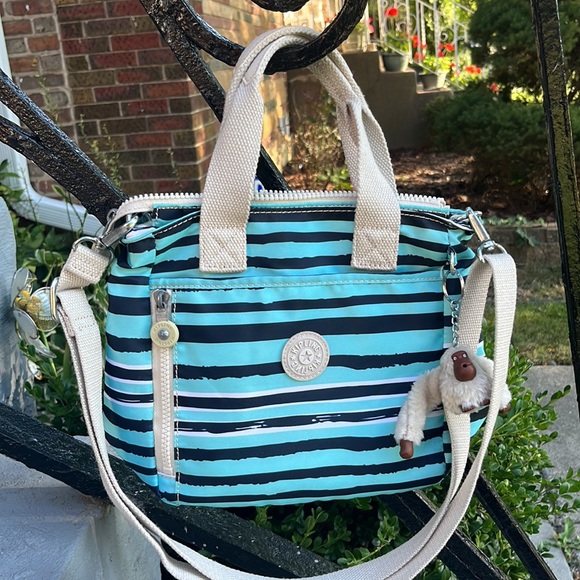 This color is called Spectacle Stripe. In good used condition, a Kipling Classic💕 See last pic for stain. Could probably use a run through the wash before use. I loved carrying this beauty and I hope you do too!! Pet Friendly Home 🏡