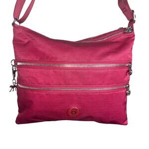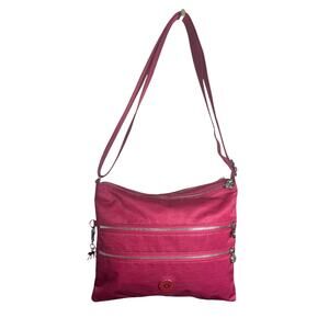 Kipling Alvar Crossbody Bag Raspberry Nylon Adjustable Strap Zipper Pockets
