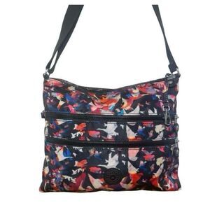 Kiplings both fashion forward and very functional, practical usage with the front two pockets for all your essential needs top zip closure, adjustable, detachable strap find nylon print and signature logo