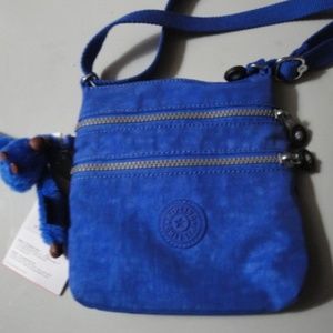 For sale is a Kipling Alvar XS Glacier Blue small crossbody bag with a monkey keychain.