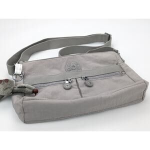 Kipling Angie Crossbody Bag w/Fuzzy Gorilla Keychain Gray Grey 11x8x2 USED ONCE!