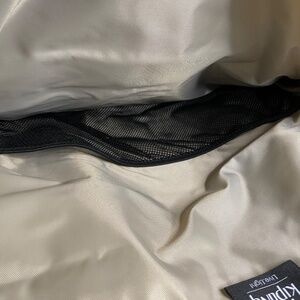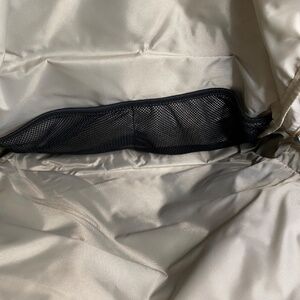 Here is a nylon diaper metallic bag approximately 13.25"L x 14.5"H x 0.75"D about 15L and it has two main zip compartments two front sip pockets water bottle pockets top carry handles adjustable padded backpack straps changing pad included