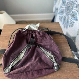 The Vintage Kipling Fundamental Backpack/Rucksack in purple is a stylish and durable nylon bag with a drawstring closure. This backpack from Kipling features a classic design (I no longer have the monkey key chain). Bag is in great condition