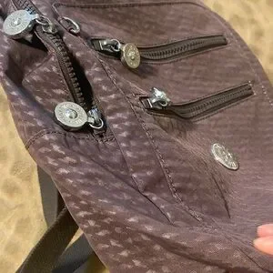 Kipling backpack with a unique pattern. Features multiple zippered pockets for organization.