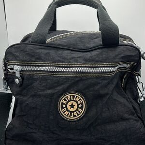 Kipling Black Large Canvas Zip Up Duffel Bag with Adjustable Strap Unisex