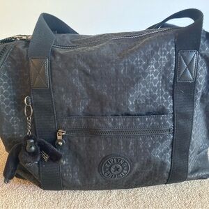 Stylish Kipling travel bag. Features durable handles and front zipper pocket. Includes signature keychain accessory.