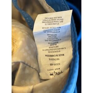 Perfect for traveling, lightweight and a beautiful shade of blue. Clean inside and out, although there is some discoloration around inside zip compartment seam area only.