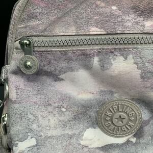 ** monkey has damages, backpack is in good overall condition This Kipling Challenger Backpack in Canyon Mist is the perfect accessory for any adventurous child. With a spacious 14-inch height, it offers plenty of room for all their essentials. The backpack features a zip closure and multiple pockets, including zip pockets, to keep everything organized. Made from durable polyester material, this backpack is built to last. The pink, gray, white, and purple color combination is both stylish and eye-catching. The backpack is suitable for both boys and girls and is ideal for school, day trips, or even as a carry-on for travel.