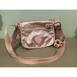Kipling Crossbody Bag Pink Metallic Shoulder Bag Flap Casual 9X5