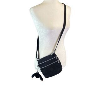 Kipling Crossbody Bag Purse Black Nylon 7”x8" with Davina Monkey Keyring Charm