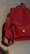 Chic red backpack with geometric design. Spacious main compartment. Handy front pocket.