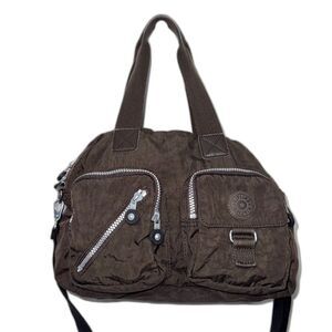 Kipling Defea Satchel No Monkey - Brown. This item is pre-owned in good condition. It is missing the monkey charm. Some stains on the inside. See pics.