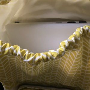 Comfortably fits an 11” tablet. Durable and lightweight with 7functional pockets. Kipling mascot unfortunately not included. My kids lost it. Pics show signs of wear, otherwise super cute design and light neon color!
