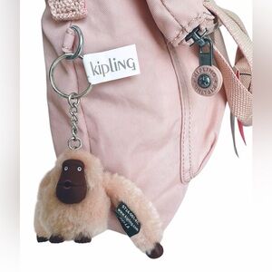 Size Large.  Logo Accent, Detachable Adjustable Crossbody Strap, Dual Top Carry Handles, Monkey Charm named Bella.