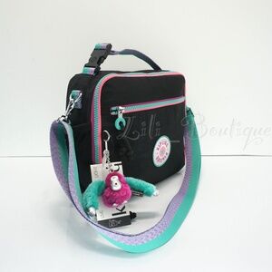 Kipling Ermy Insulated Lunch Bag KI9418 Polyamide EVA Rainbow Fun Jet Black $74
