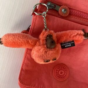Kipling El Dorado “Ester” Crossbody Bag in Peachy Fun. Approximately 6” wide x 8” in length. Adjustable shoulder strap. Money key chain attachment is removable. Main flap has one open compartment, one magnetic snap pocket, and 3 card slots. Two external zip pockets. New without tags, but never used. Smoke and pet free home.